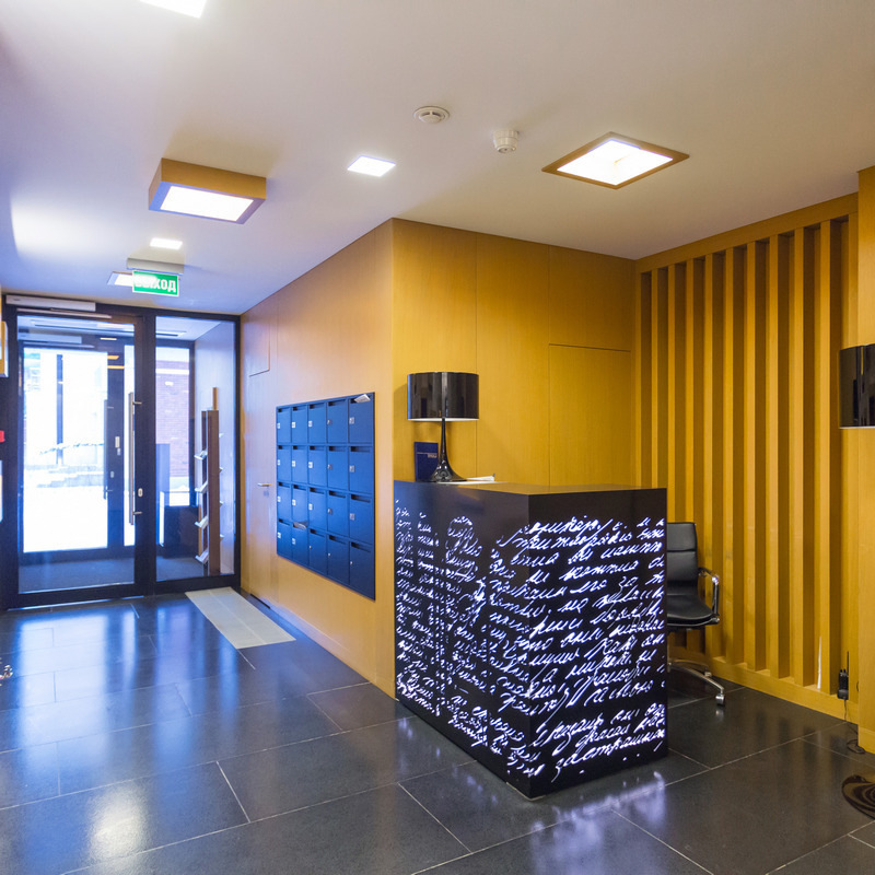 Первые этажи комплекса занимают стильные и уютные лобби, в которых прослеживается лейтмотив названия проекта — стойки ресепшн декорированы выдержками из записей писателя. Стеновые панели из натурального дерева светлого оттенка и мягкое приглушенное освещение придают общественным зонам уют. Для гостей организованы зоны ожидания. Комплексе работают консьерж-сервис, частный детский сад, магазин и небольшой фитнес-клуб с бассейном.